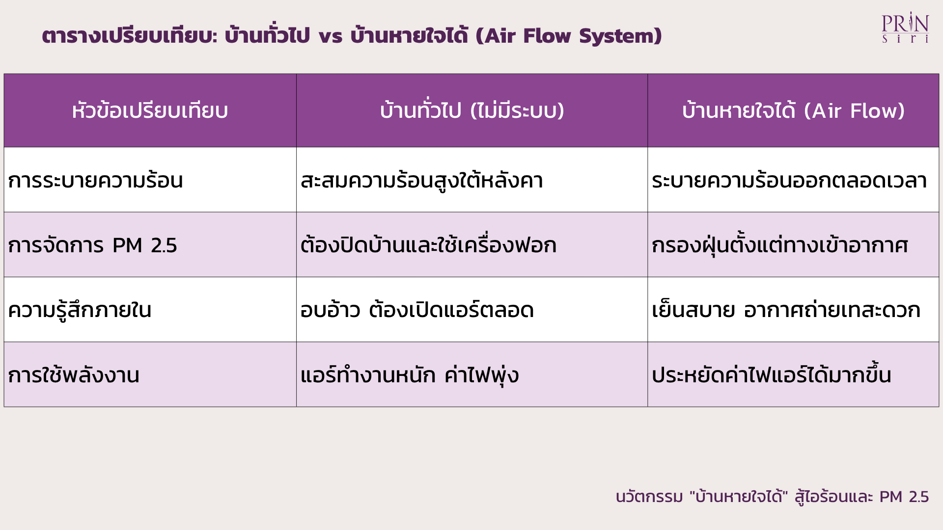 ตารางเปรียบเทียบ: บ้านทั่วไป vs บ้านหายใจได้ (Air Flow System)