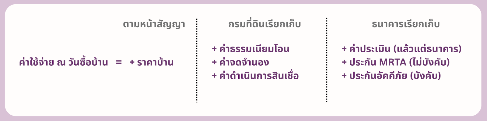 - ข้อสังเกต: หากซื้อสด (ไม่กู้ธนาคาร) จะไม่มีค่าจดจำนอง