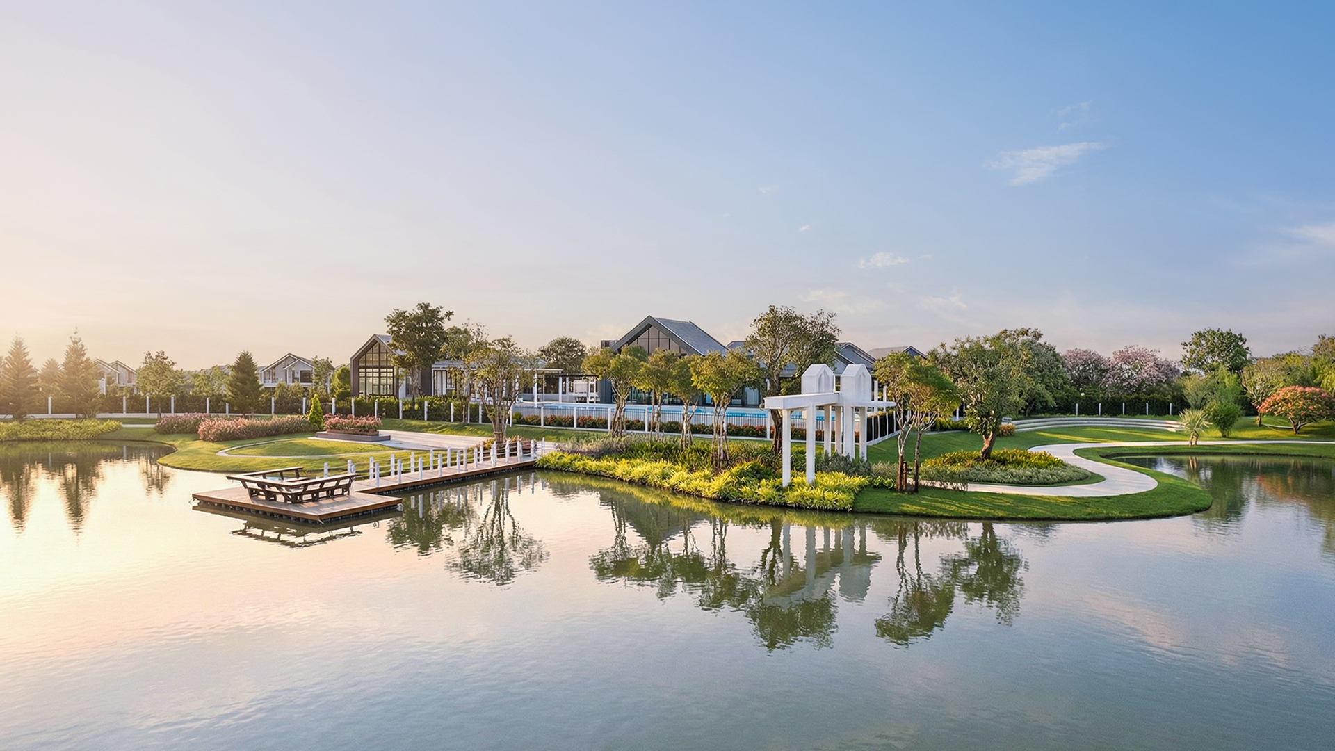 A: บรรยากาศริม ทะเลสาบ ขนาดใหญ่ ทาวน์โฮมดีไซน์โปร่งโล่งอารมณ์บ้านเดี่ยว ให้ความรู้สึกรีสอร์ตในทุกวัน